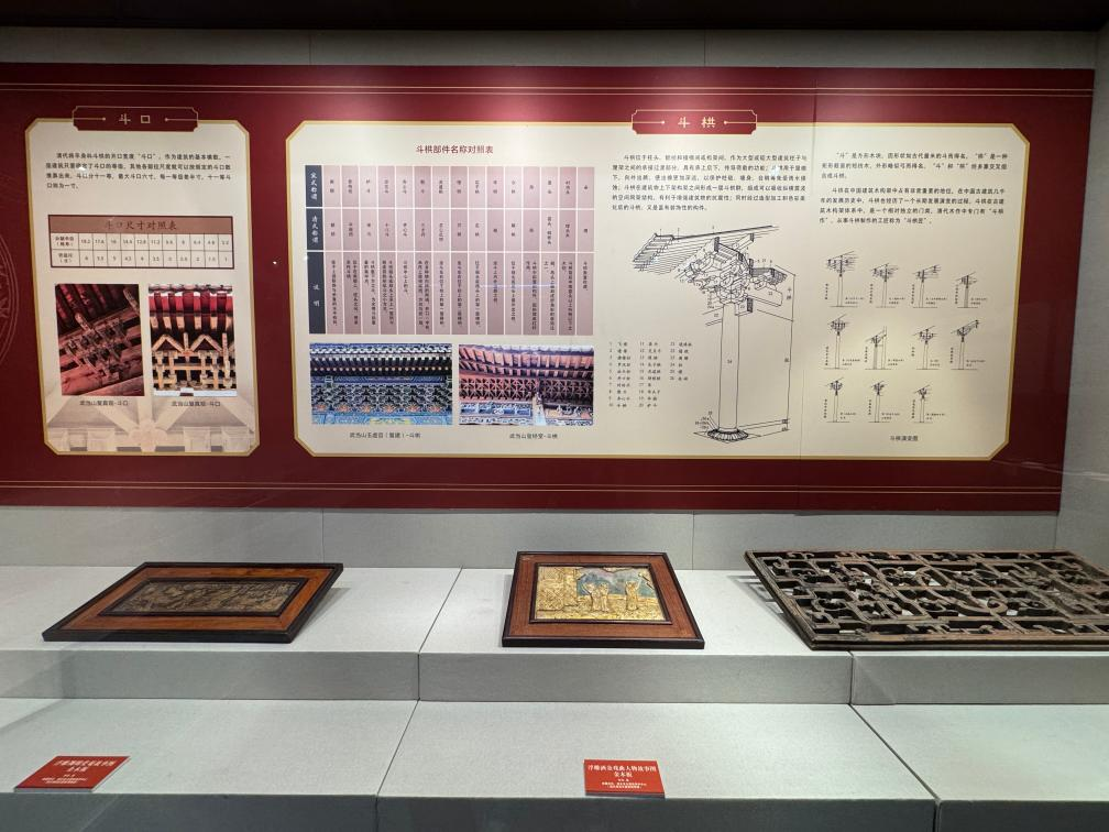 中国古代建筑的屋顶堪称最具辨识度的外观特征。记者走访看到,展览中对庑殿顶、歇山顶、悬山顶、硬山顶等进行了系统介绍。“这些屋顶形式绝非随意为之,而是严格对应着建筑等级和功能需求。在实际建造中,工匠通过灵活运用色彩搭配和装饰手法,使屋顶呈现出千变万化的艺术效果,充分展现了中国传统建筑独特的审美魅力。”新乐遗址博物馆业务室主任常乐介绍说。