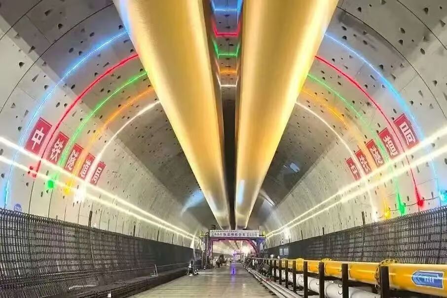 “面对水下0.9兆帕的极高静水压力和全线最复杂地质区间,我们制定‘材料、结构、智能’三位一体多层级应对方案。”李斌手指着隧道内智能拼装好的一环环管片告诉记者,项目团队首创高稳定性注浆材料,就像为管片披上“定沉铠甲”,在外围形成保护层;增设第六道盾尾密封系统,构建起“固若金汤”的超级防水屏障,确保隧道在动态水压下也能“稳如磐石”。